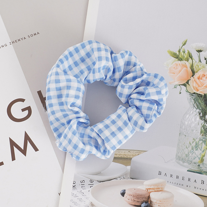 Tên sản phẩm: Dây buộc tóc Chất liệu chính: Vải Kích thước sản phẩm: Đường kính gạch 9cm Màu sắc: Dây buộc tóc kẻ sọc đầy màu sắc Phong cách: Thời trang Hàn Quốc