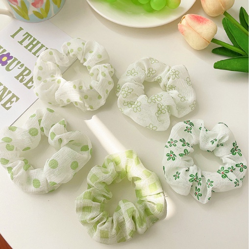 Dây buộc tóc, dây cột tóc vải cao cấp phong cánh hàn quốc, họa tiết xanhGiá FRGB