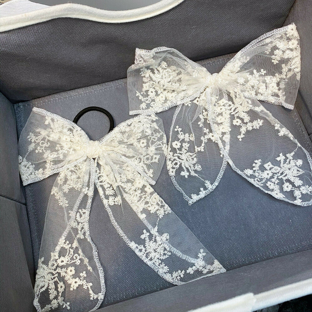 ★★★ Product description: ★★★ [ Women Flower Bow Hair Rope ] [ French Satin Mesh Spring Clip ] [ Popular Elegant Duckbill Clip ] [Korean Fashion Lace Hair Accessories ]