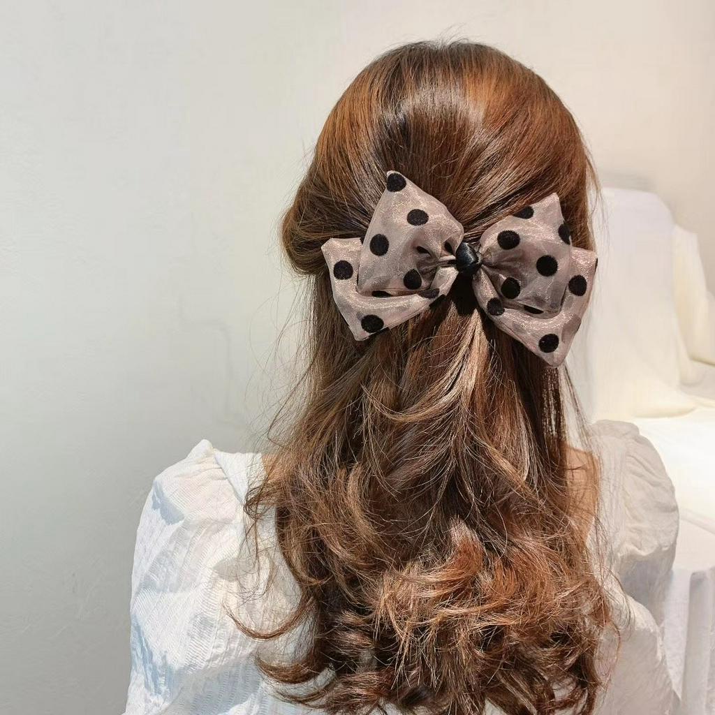 Giới thiệu Dây buộc tóc/kẹp tóc đính nơ họa tiết chấm bi thời trang ngọt ngào nữ tính