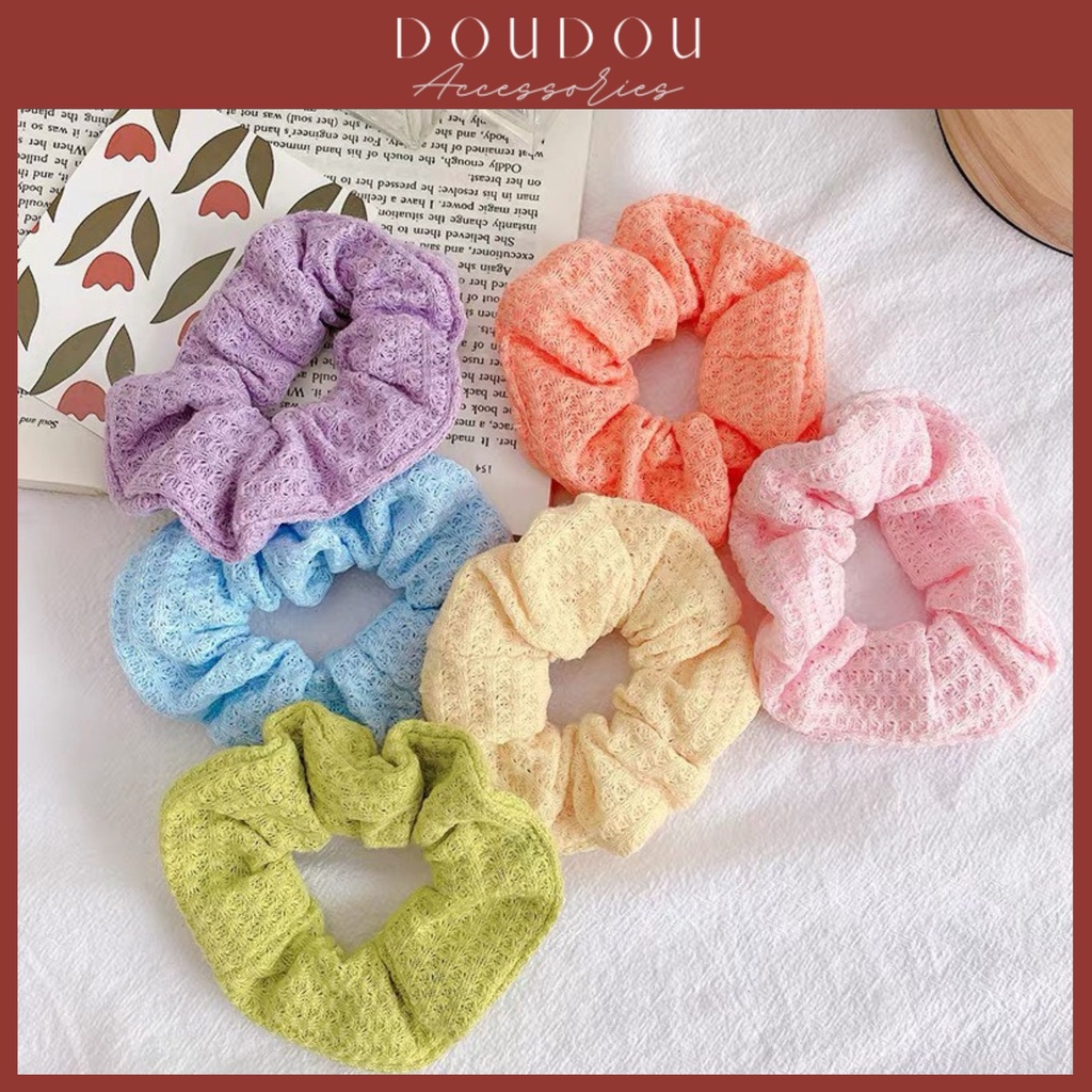 Tên sản phẩm: Dây buộc tóc Scrunchies DOUDOU Dây cột tóc nữ vải nhún mềm mịn họa tiết màu sắc xinh xắn thời trang FQ010