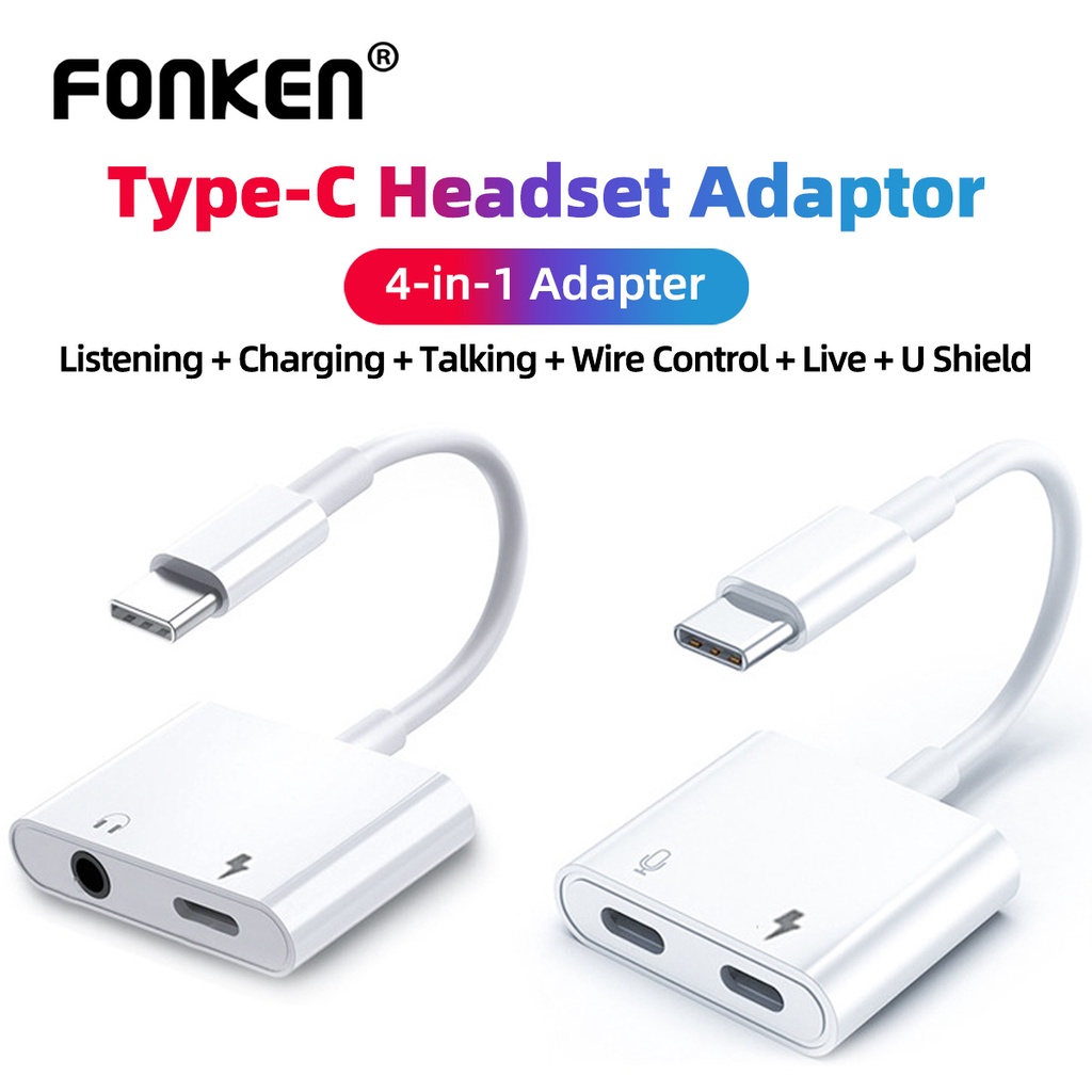 Điện Thoại & Phụ Kiện > Pin Gắn Trong, Cáp và Bộ Sạc > Cáp Sạc và đầu chuyển đổi > Dây Cáp Chuyển Đổi Âm Thanh Fonken 2 Trong 1 Từ Đầu Cắm Type-C Sang Cổng Cắm Type-C 3.5mm