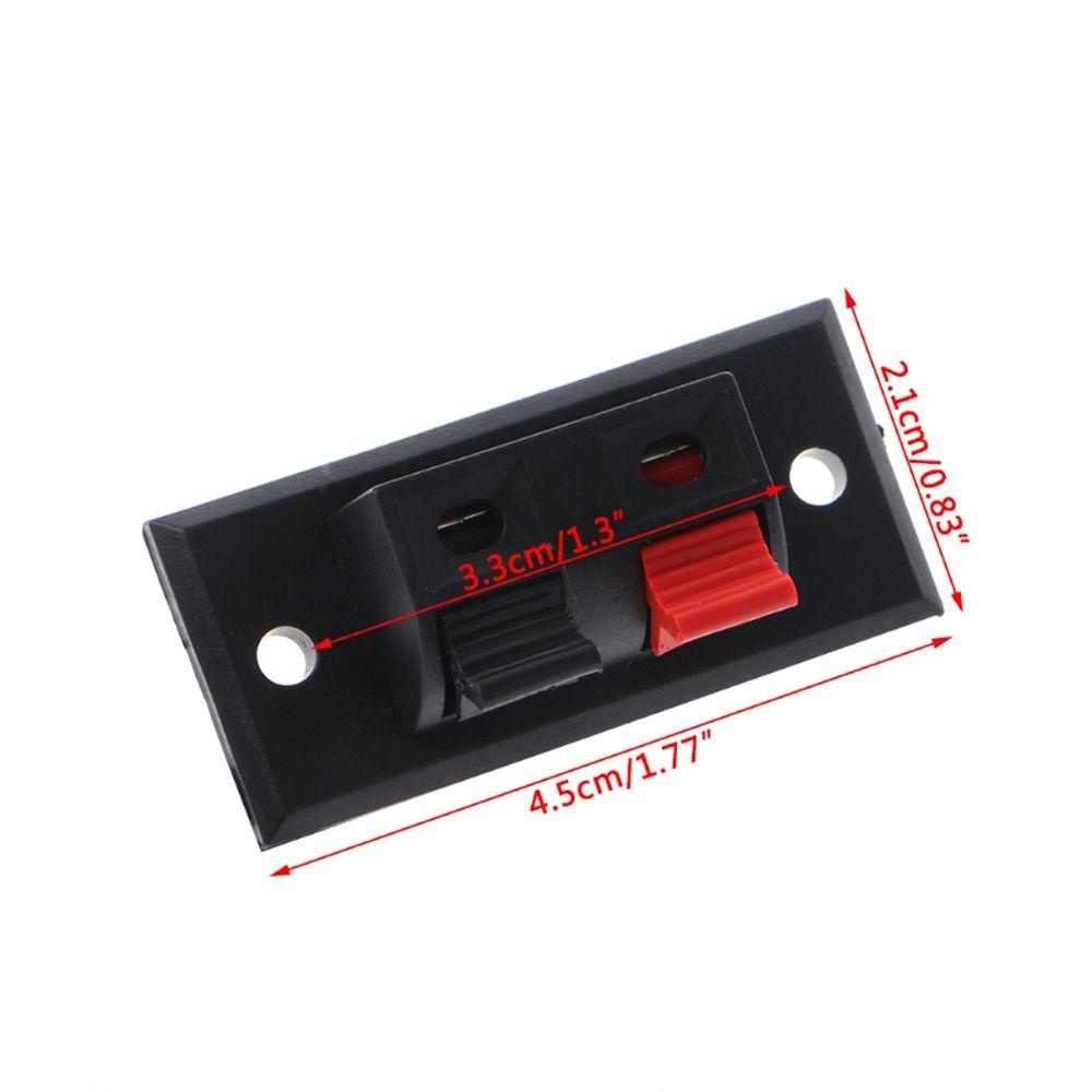 Sản phẩm: Thiết bị đầu cuối loa Chất liệu: nhựa ABS + sắt (chất liệu dẫn điện) Kích thước tổng thể: 4,5x2,1x3,3cm / 1,77x0,83x1,3 " Đường kính lỗ lắp: 3,5mm / 0,1 " Khoảng cách tâm lỗ được gắn: 35mm / 1,4 " Số lỗ: 2 lỗ Nhiệt độ môi trường: -20-70 độ Điện áp định mức: 50V Đánh giá hiện tại: 3A Màu sắc: đen Số lượng: 5 cái / túi Gói bao gồm: 5 cái / túi Đầu nối Thiết bị đầu cuối Đặc điểm: 2 Thiết bị đầu cuối, 1 Đỏ, 1 Đen, 2 Vị trí, Thiết kế tải lò xo, Loại đẩy, Đầu cuối loa. Các thiết bị đầu cuối đẩy đảm bảo kết nối chắc chắn và giúp móc dây trở nên dễ dàng. Thiết kế tùy chỉnh với các nâng cấp loa hoặc loa tùy chỉnh của bạn để kết nối cáp loa.