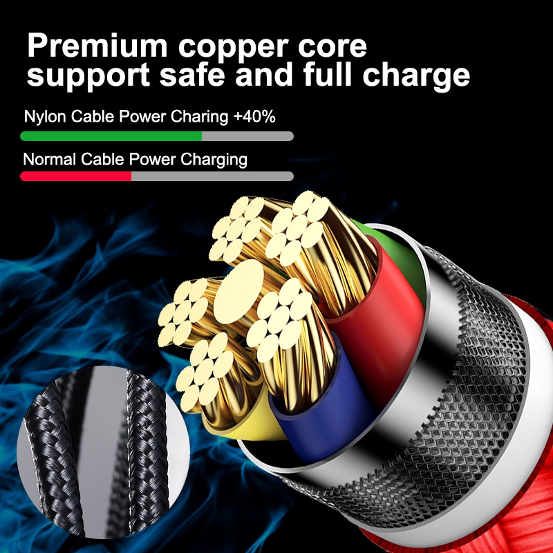 Tính năng 2: bện Nylon + Bảo vệ nguồn + Cáp nam châm chỉ báo LED