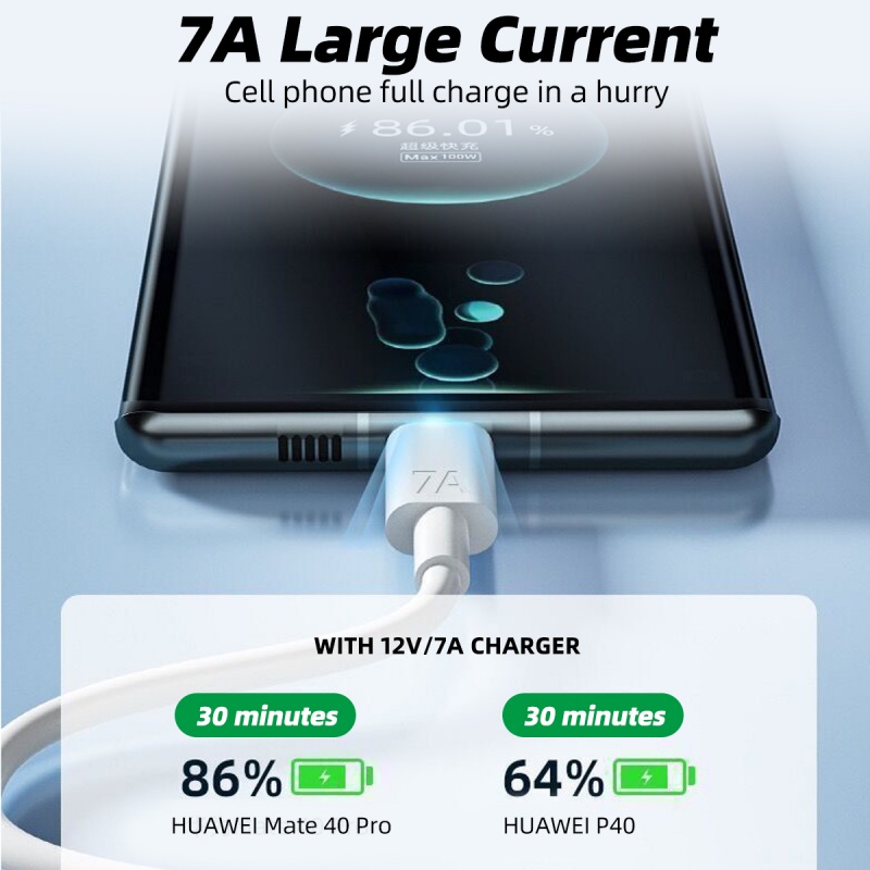Mô tả sản phẩm: Hỗ trợ sạc và truyền dữ liệu cực nhanh 7A. Cáp Type-C có thể đảo ngược: Đồng bộ hóa dữ liệu siêu sạc và tốc độ cao, nhanh hơn, an toàn hơn, mạnh hơn. Thoải mái và bền: Với cảm giác thoải mái, cáp linh hoạt và bền. Sạc nhanh: Đầu ra dòng điện 7A, tương thích với điện thoại di động Huawei, hỗ trợ sạc nhanh đầu ra 7A, cũng có thể tương thích với các thiết bị khác / điện thoại thông minh / điện thoại và các thiết bị type C khác.