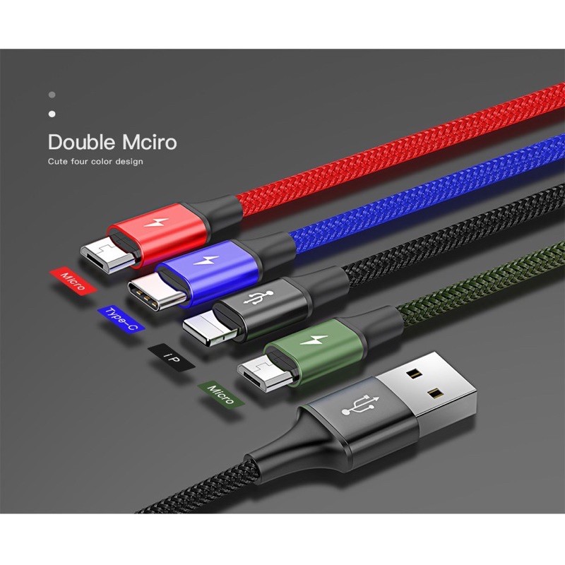 Điện Thoại & Phụ Kiện > Pin Gắn Trong, Cáp và Bộ Sạc > Cáp Sạc và đầu chuyển đổi > Dây cáp sạc truyền dữ liệu tốc độ cao 4 in 1 Baseus- Hàng chính hãng