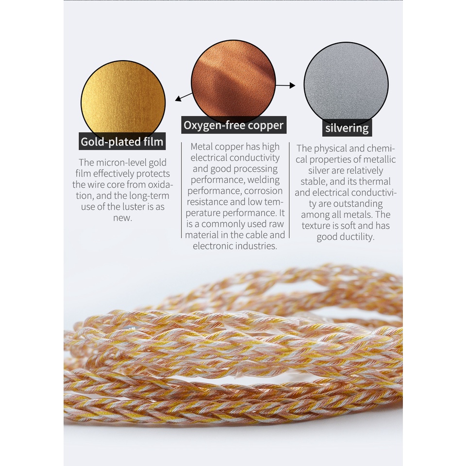 Thiết Bị Điện Tử > Loa > Dây cáp, bộ chuyển đổi âm thanh & video > Dây cáp tai nghe KZ 8 lõi màu vàng bạc với chuôi cắm 3.5mm 2pin chuyên dụng cho KZ ZSN ZS10 PRO DQ6 CSN VX