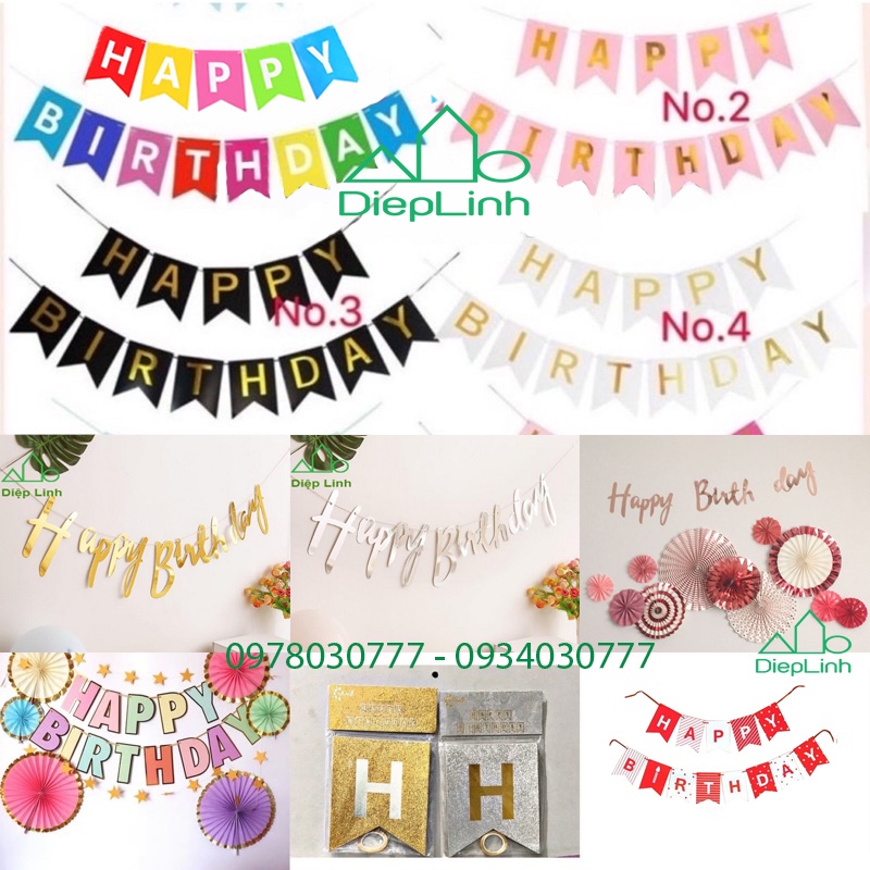 Dây chữ Happy Birthday, Happy Full Month đuôi cá và ép kim trang trí sinh nhật, thôi nôi, đầy tháng