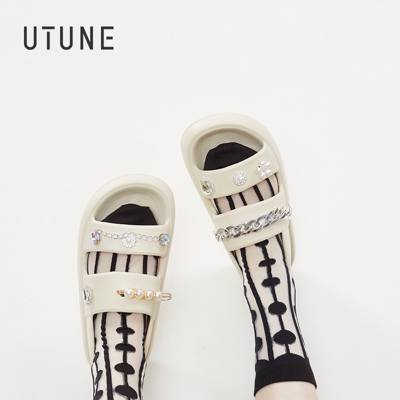 Giới thiệu Dây chuỗi ghim cài UTUNE bằng kim loại xỏ hạt hình hoa phong cách punk trang trí giày thể thao