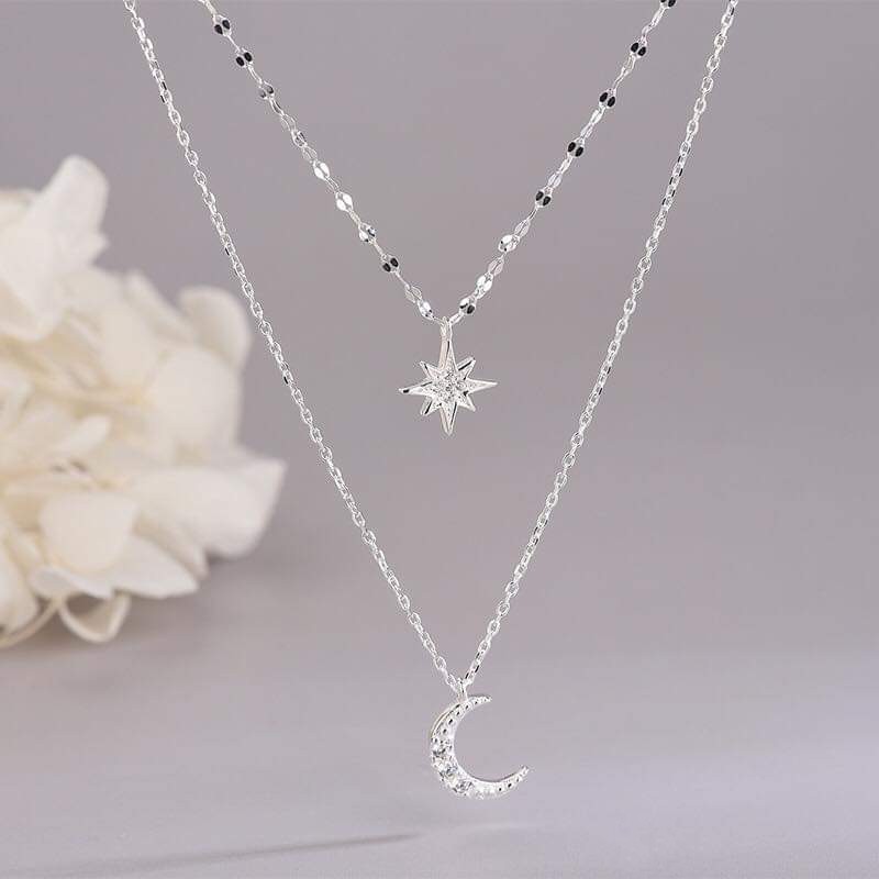 Giới thiệu Dây chuyền bạc Dây đôi Trăng Sao hai tầng xinh xắn