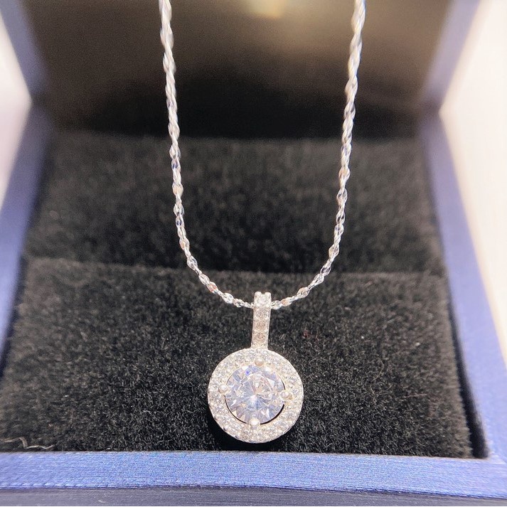 Giới thiệu Dây chuyền bạc Evasilver mặt tròn đính đá nữ tính, Trang sức bạc Ý cao cấp
