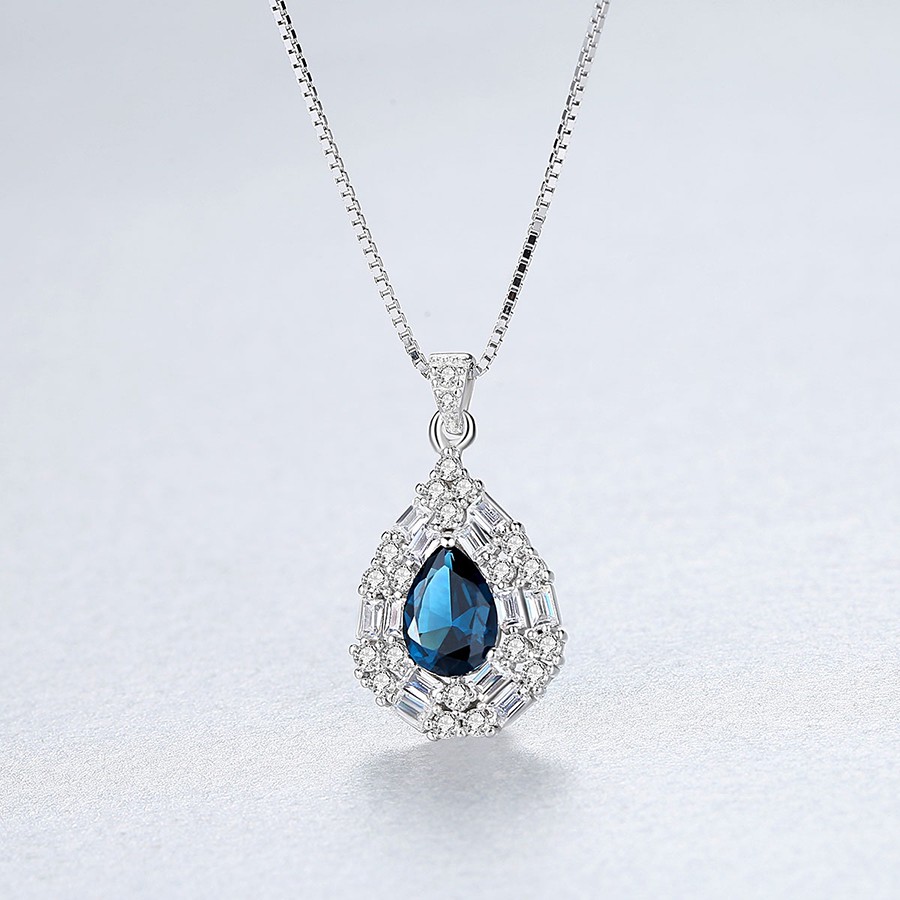 Giới thiệu Dây Chuyền Bạc Nữ Thiết Kế Hình Giọt Nước Đính Đá Trắng-Xanh Sang Trọng DB2417-Bảo Ngọc Jewelry