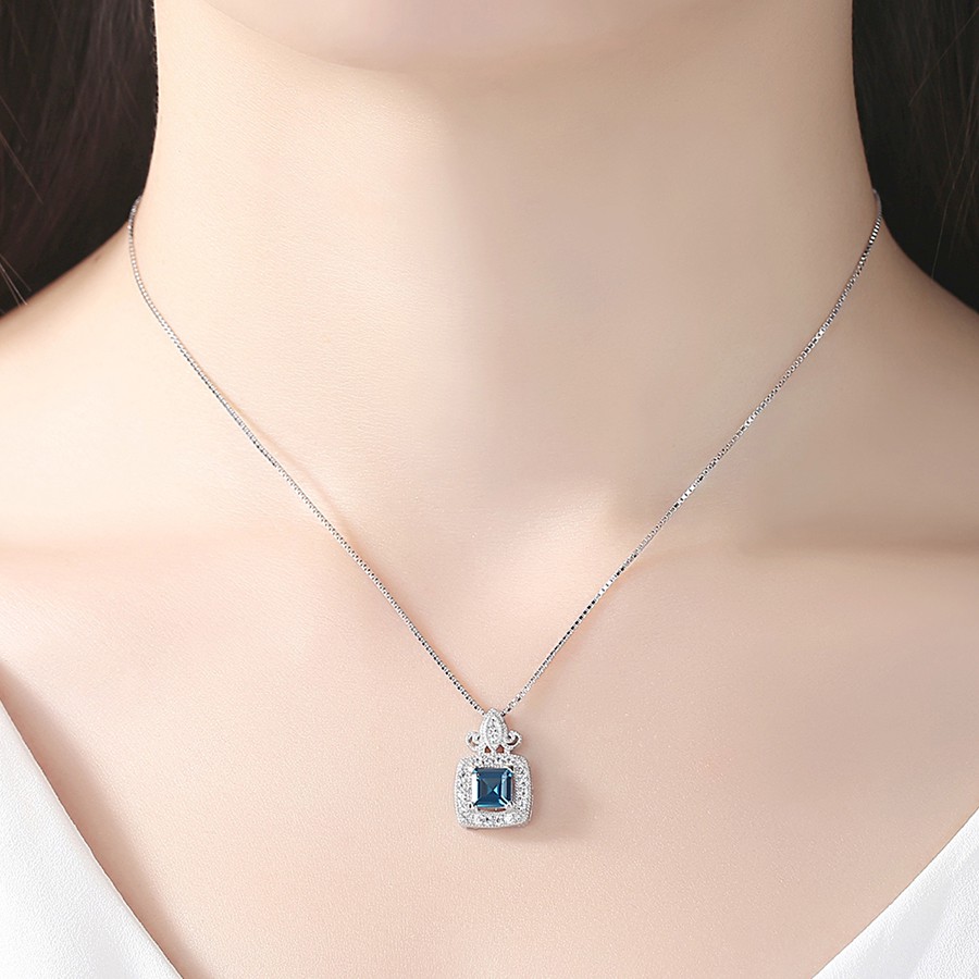 Dây chuyền Bạc Ý Cao Cấp Đính Đá Màu Xanh Dương Sang Trọng DB-2398-Bảo Ngọc Jewelry