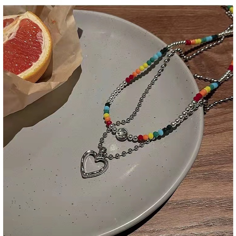 Giới thiệu Dây Chuyền Hai Lớp Bằng Thép Titan Mặt Hình Mặt Cười Đính Hạt Nhiều Màu Phong Cách Hàn Quốc