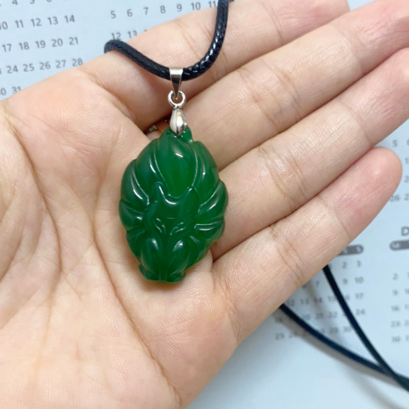 Thông tin chi tiết sản phẩm: - Tên sản phẩm:Dây chuyền Hồ ly chúa chín đuôi (Cửu vỹ ly hồ) - Chất liệu: Đ.á mã não tự nhiên - Kích thước: ~ 3.0 x 2.0 cm - Màu sắc: Trắng, đỏ, vàng, xanh - Trọng lượng: ~8 g - Sản phẩm bao gồm: 1 mặt hồ ly, móc và dây đeo