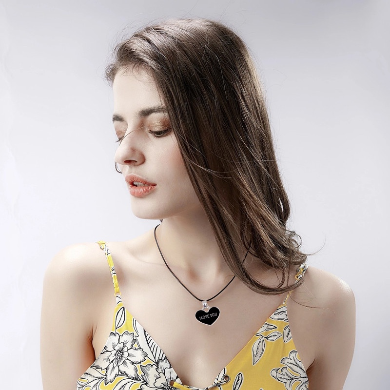 Description: Name: Black and White Love Heart Forever I Love You Pendant Couple Necklace Material: alloy + wax rope Size: 44+4cm Color: black 、white Category: Necklace Style: Couple Style: Love Pattern: Letters Style: Japanese and Korean Treatment process: dripping oil Quantity: 1