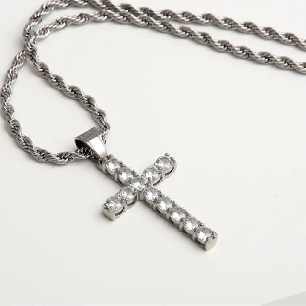 Dây Chuyền Nam Mặt Chữ Thập Đính Đá Siw Chain Kuu Studio Màu Bạc Đẹp Cao Cấp - Vòng Cổ Nam Ice Cross Chất Liệu Titan