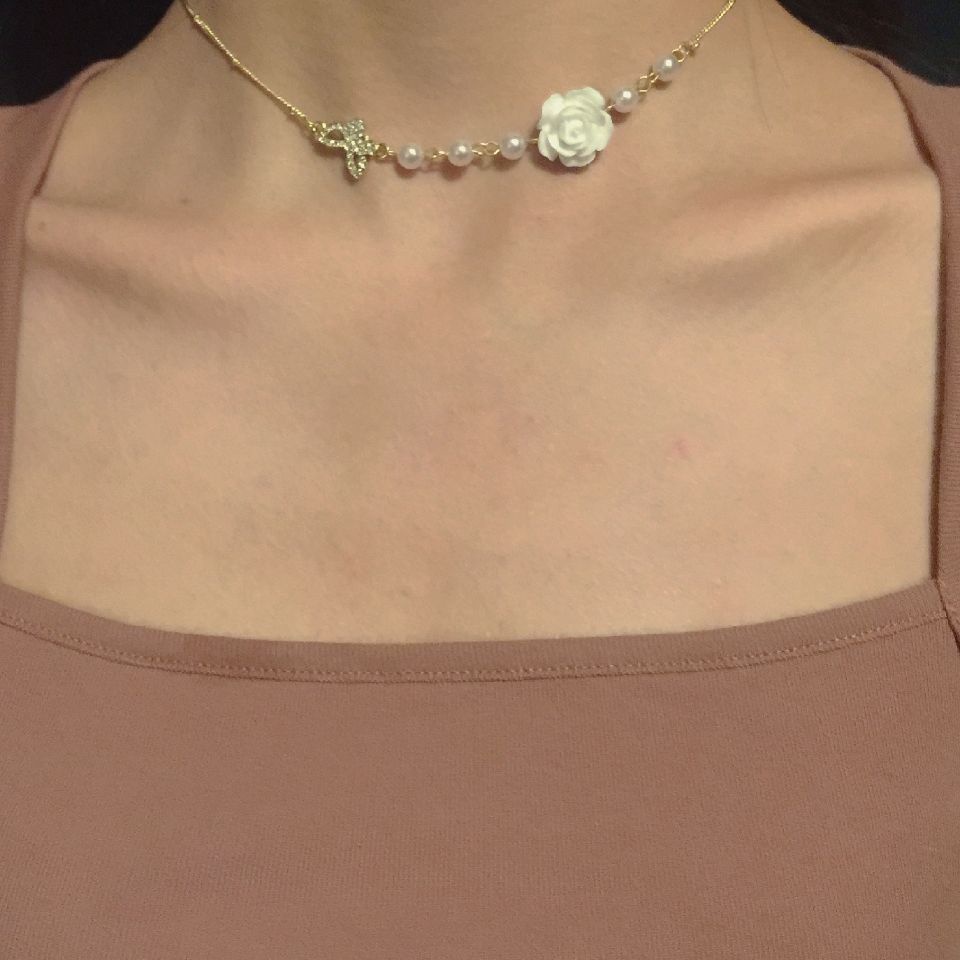 Rose Shufulei Pháp retro khí chất hoa hồng ngọc trai vòng cổ nữ niche thiết kế cảm giác xương đòn chuỗi phụ nữ