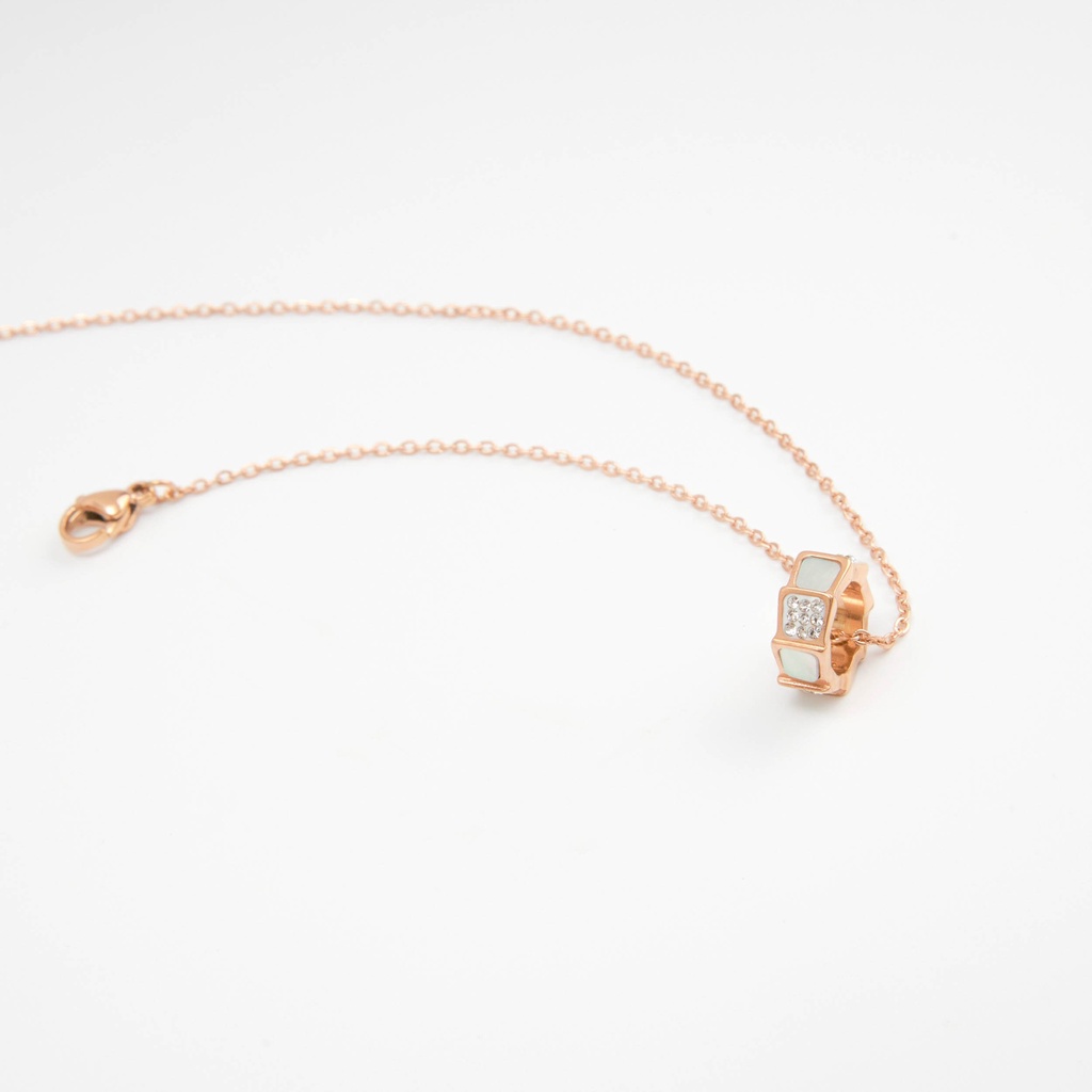 - Thương hiệu: CDE Jewelry - SKU: CDE6013 - Kích thước size: : Dây chuyền chỉ có một kích thước, nhưng có thể dùng các chốt điều chỉnh để căn chỉnh chiều dài từ 40cm đến 45 cm - Màu sắc: Vàng hồng - Chất liệu: Hợp kim, xà cừ, đá Zirconia.