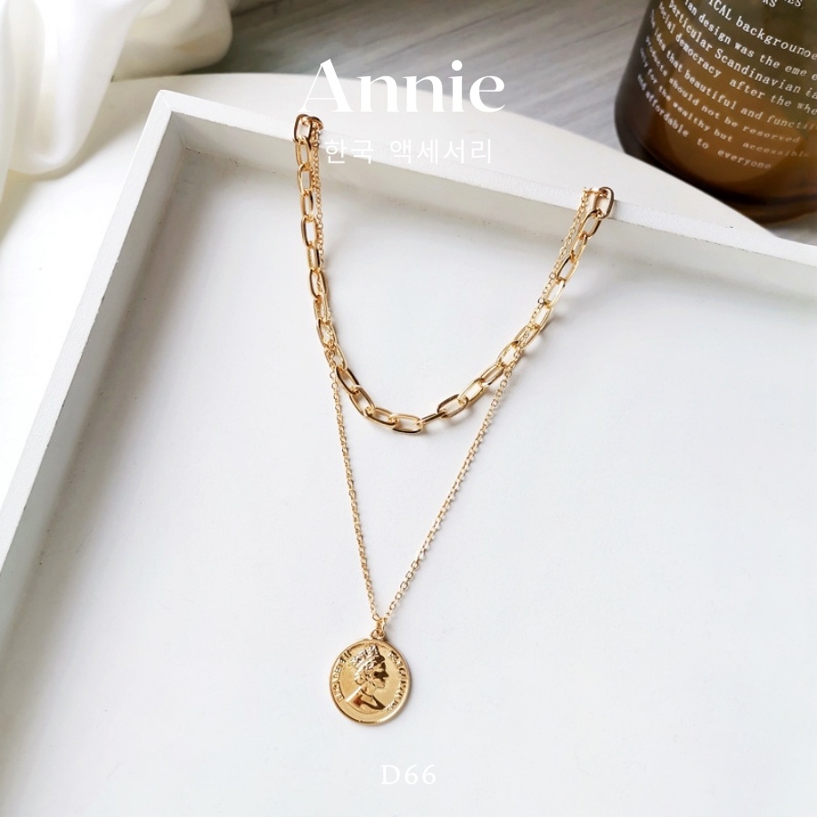 Giới thiệu Dây chuyền phối kiểu 2 sợi hình đồng tiền mạ vàng phong cách cổ điển ANNIE - D66