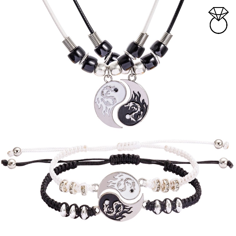 Tên: Hình con rồng Màu đen và Trắng Khâu Yin Yang Tai Chi Dệt cặp đôi Vòng cổ Vòng cổ Chất liệu: hợp kim + dây sáp Màu sắc: Đen trắng Kích thước: Vòng đeo tay có thể điều chỉnh 18-28cm, vòng cổ 47 + 5cm Phong cách: Unisex Mô hình hóa: Dragon Totem Tai Chi Bagua Quy trình: dầu nhỏ giọt Phong cách: dân tộc Số lượng: 1 cặp