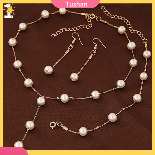 Chi tiết sản phẩm: Bộ trang sức dây chuyền, vòng tay, bông tài đính ngọc trai nhân tạo Là bộ phụ kiện lý tưởng cho tiệc tùng và yến tiệc. Phù hợp để phối với váy, áo phông hoặc hầu hết các trang phục của quý khách.