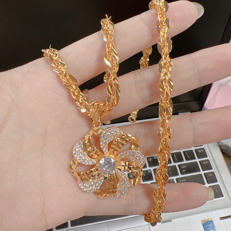 Dây chuyền xoắn kèm mặt hoa Cam kết sản phẩm y hình, không giống trả hàng hoàn về cho shop 𝐓𝐫𝐚𝐧𝐠 𝐬𝐮̛́𝐜 𝐊𝐚𝐦𝐢 chuyên cung cấp sỉ và lẻ trang sức titan, trang sức xi mạ vàng - bạch kim.