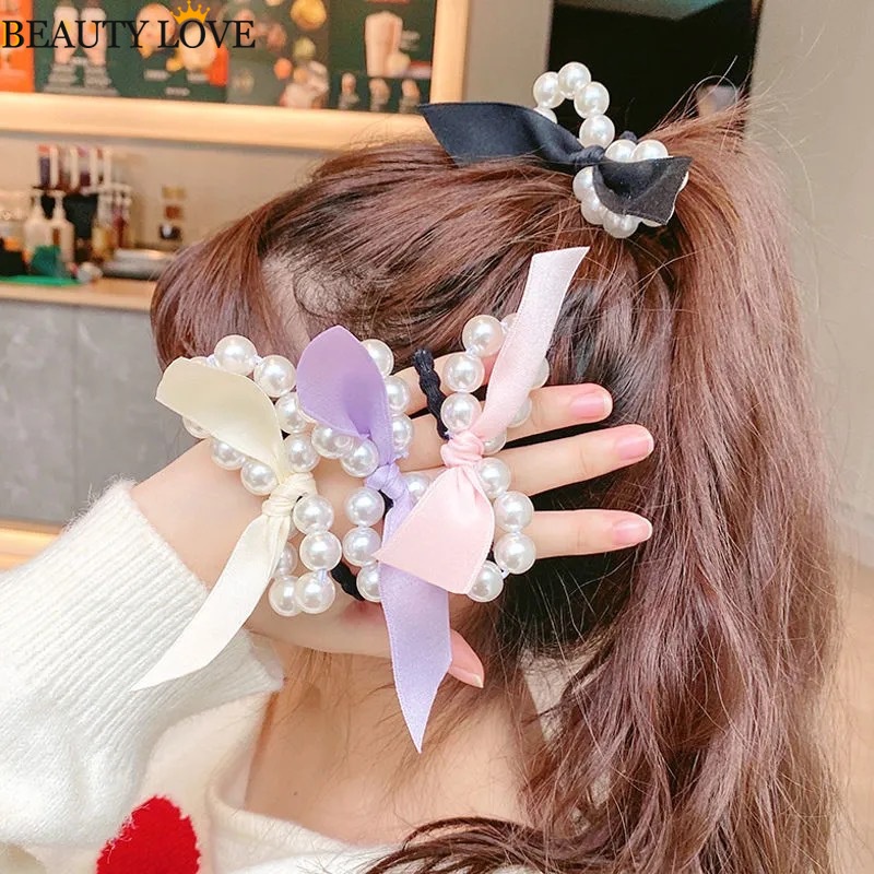 Giới thiệu Dây Cột Tóc Co Giãn Hình Nơ Đính Ngọc Trai Lớn Phong Cách Pháp Thanh Lịch Cho Nữ