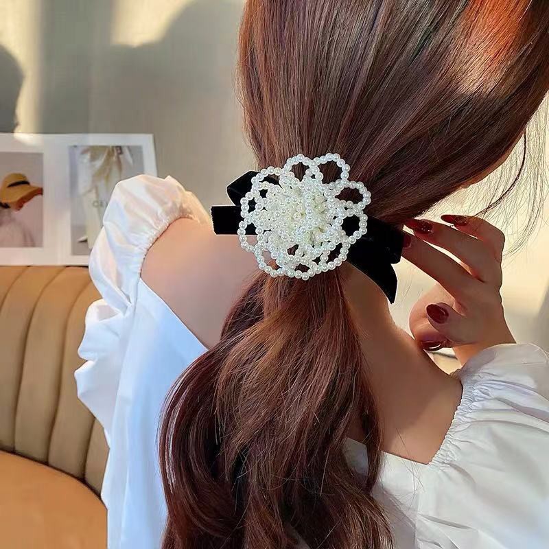 Giới thiệu Dây cột tóc đính ngọc trai hình hoa trà thắt nơ kiểu tiên Hàn Quốc dễ thương cho nữ