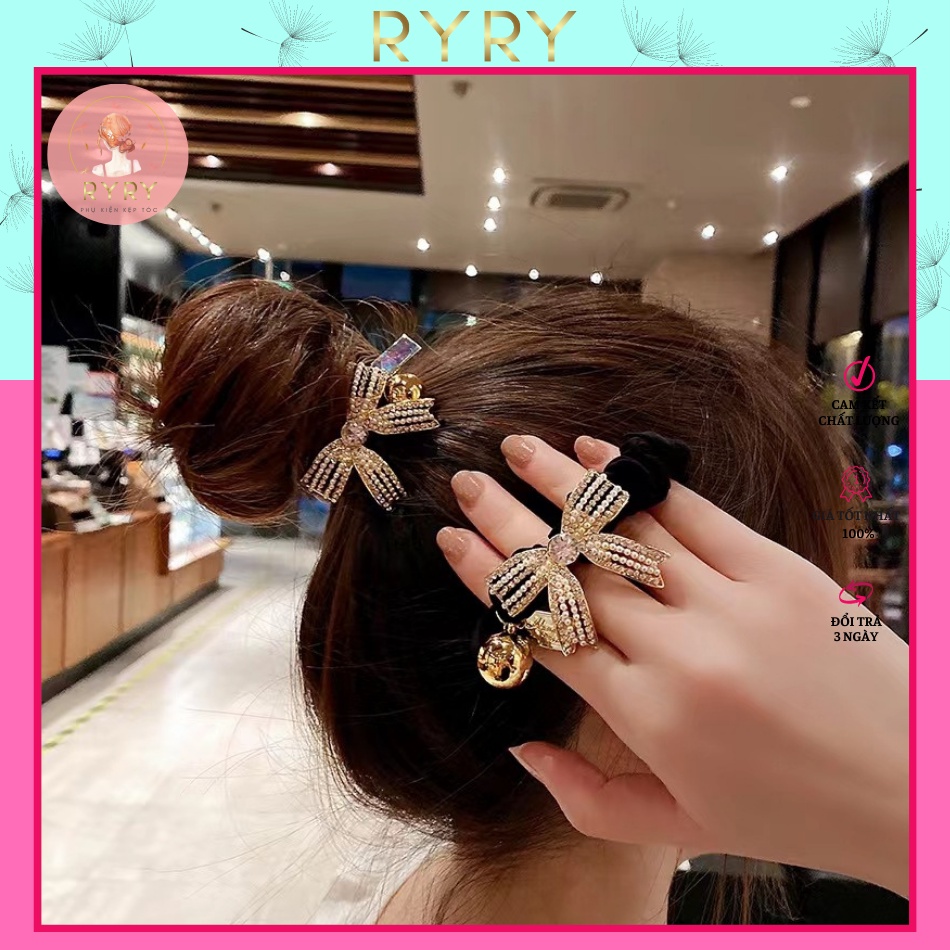 Giới thiệu Dây Cột Tóc Nơ Đính Đá Xinh Xắn Sang Chảnh Cho Nữ