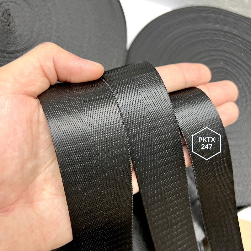 THÔNG TIN SẢN PHẨM - Tên sản phẩm : Dây quai túi dệt - Chất liệu: Dây dù bóng. - Kích thước: 2.5cm, 3cm, 4cm - Màu sắc: Đen, nâu,… - Ứng dụng: Dùng làm quai các loại túi, balo thời trang, túi đeo chéo,...
