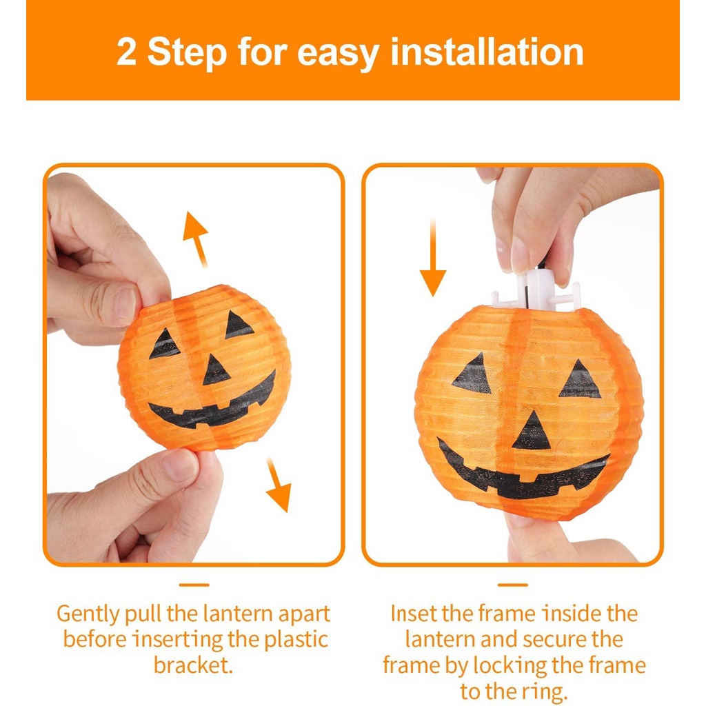 Dây đèn bí ngô bằng vải chạy pin 20 quả đường kính 7,5cm trang trí Halloween ánh sáng vàng - Dây đèn được chạy bằng pin nên không cần cắm điện, rất thuận tiện cho việc trang trí ở bất cứ nơi nào bạn muốn - Đèn có thể chịu nước, treo được ngoài trời - Đèn sử dụng 3 viên pin AA ( shop giao sản phẩm chưa bao gồm pin) - Gồm 20 quả bí ngô đường kính mỗi quả 7,5m bằng vải rất bền, khi lắp bạn dùng khung nhựa trắng để căng quả bí lên rồi lắp vào đèn led - Đèn ánh sáng led không tốn pin mà rất sáng - Dùng để trang trí lễ hội hóa trang Halloween
