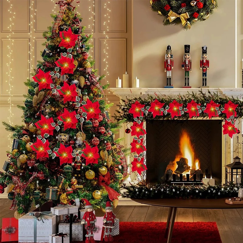 Mô tả: Nó Chứa 10 bông hoa Đỏ, 9 chiếc Quả Holly + 9 chiếc Lá Xanh. Được sử dụng trong nhà, Ngoài trời, Giáng sinh, Đám cưới, Cửa ra vào, Nơi cháy, Thảm trải giường, Lễ hội và Tiệc tối, Như một Vòng hoa treo, Trang trí ban công, Vườn, Đám cưới, Bàn, Bộ xích đu, Đường sắt cầu thang, Nhà hàng, Văn phòng và các địa điểm khác để thêm Không khí Chất liệu: Hoa: Vải nhung cộng với nhựa, Quả mọng đỏ: Dây xốp Plus Thông số kỹ thuật: 2 mét 10 đèn Nguồn cung cấp: Hộp pin Loại pin: 2 pin AA Kích thước: 2m Số lượng: 1 Bộ