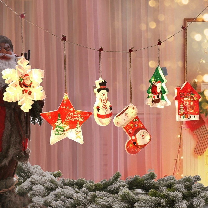 Specification Material: LED+PS+copper wire Size: Christmas tree 11.5*10.6cm, Christmas stocking 11.5*9.1cm, house 11.5*9.7cm, five-pointed star 11.4*12cm, snowflake 11.5*11.5cm, Christmas snowman 11.4*6.7cm Light color: warm white Voltage: 4.5V Power: 6W Power supply: 3 LR44 button batteries Scope of application: Christmas day decoration quantity: 1
