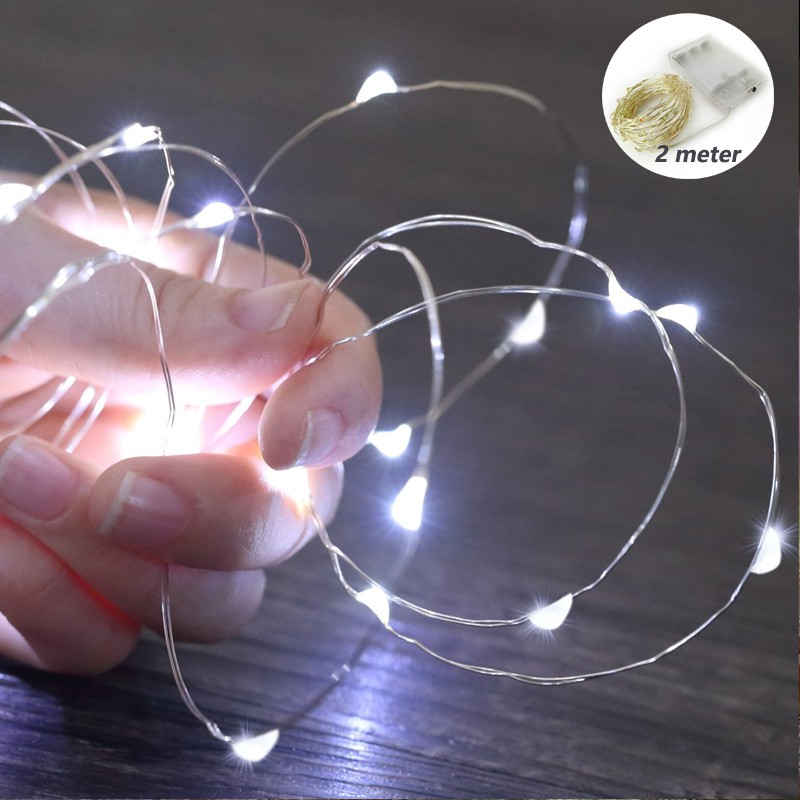 → Tên sản phẩm: dây đèn led trang trí, 2 mét, không thấm nước,cung cấp bởi pin 2AA