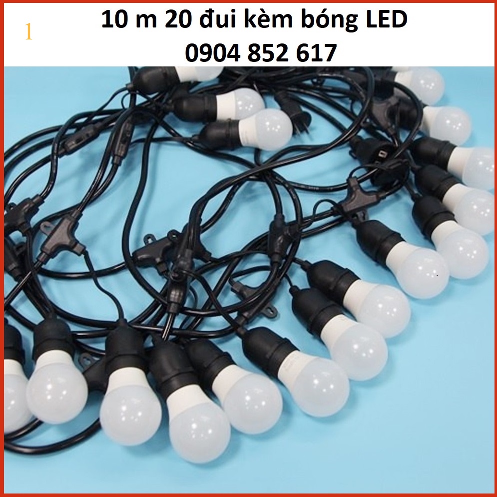 Bộ dây đui đèn trang trí ngoài trời chống nước 10 mét 20 đui trang trí quán cafe, sân vườn,