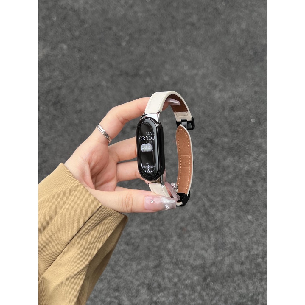 Giới thiệu Phù Hợp Dây Đeo Bằng Da Thật Cao Cấp Có Khóa Nam Châm Cho Xiaomi Mi Band 8 / 7 / 6 5 / 4 / nfc