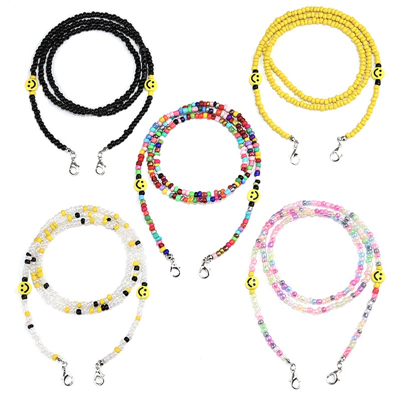 Giới thiệu Dây Đeo Khẩu Trang Chống Trượt Hình Mặt Cười Đính Hạt Nhiều Màu
