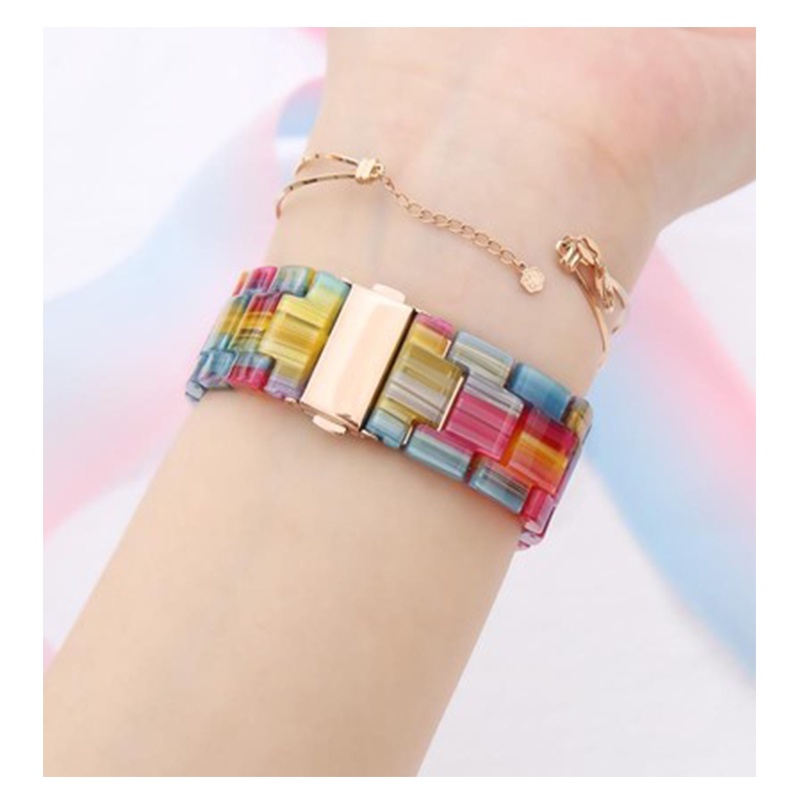 Điểm nổi bật 1. Chất liệu: Nhựa 2. Chiều dài dây đeo: 17cm, đi kèm với công cụ điều chỉnh liên kết 3. Trọng lượng: chỉ 28g, làm cho nó rất thoải mái khi mặc. 4.Mỗi phần nhựa từ từ được đánh bóng bởi các nghệ sĩ có kinh nghiệm. 5.Thiết kế của dây đeo này thực sự mát mẻ, chói lóa và phong cách 6.Chống nước, nói chung-thích hợp để rửa tay; bơi và lặn với ống thở 7.Gói bao gồm: 1 * Dây đeo đồng hồ; 2 * Đầu nối; 1 * công cụ loại bỏ liên kết (không bao gồm đồng hồ thông minh)