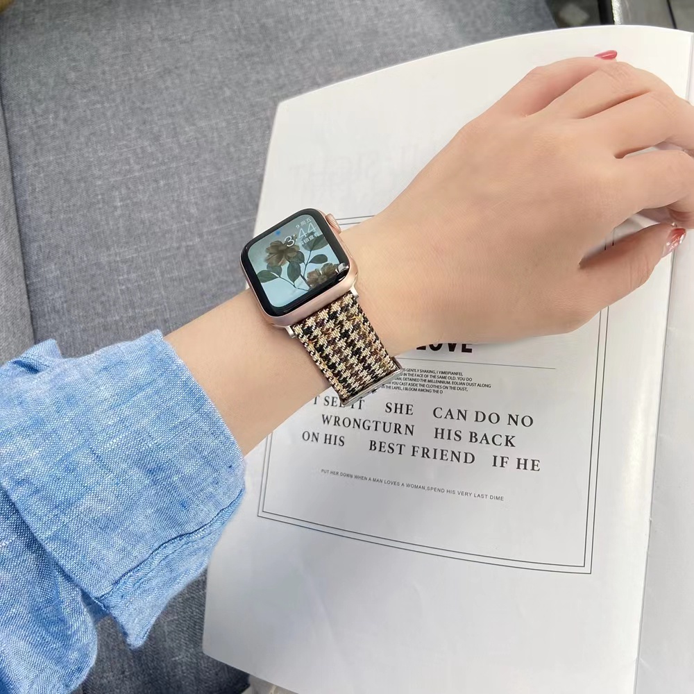 Tên: Canvas Houndstooth Panel Leather Strap Chiều dài dây đeo vai: 20 cm Loại sản phẩm: Dây đeo đồng hồ Loại chất liệu thắt lưng: da thật Tình trạng: thương hiệu mới, không có nhãn Loại móc khóa: dây đeo Màu sắc: 2 màu Phong cách: thời trang, nhẹ, sang trọng, tinh tế Kiểu Apple 1: 42 mm 38 mm 41mm Kiểu Apple 2: 44 mm 40 mm 45mm