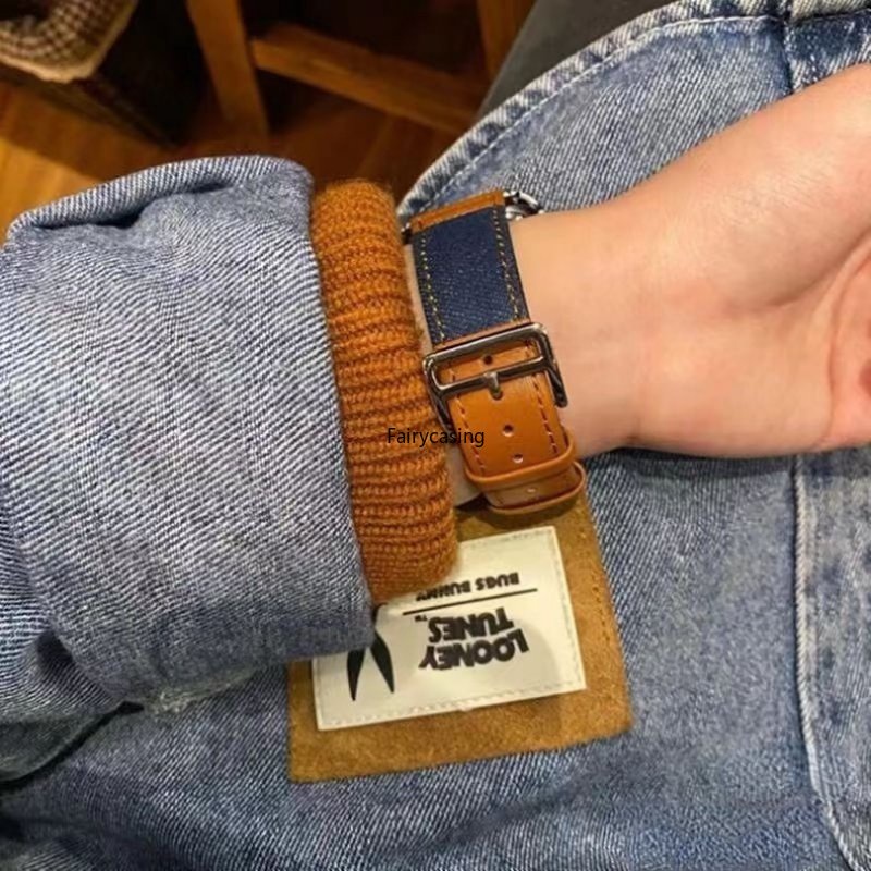 Loại sản phẩm: Dây đeo Chất liệu vỏ: Denim với da Số mô hình: watch band Đường kính mục: 49mm 41mm 45mm 38mm 40mm 42mm 44mm