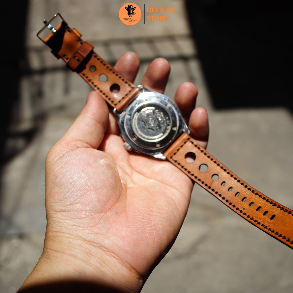 Giới thiệu Dây đồng hồ da bò màu nâu - RAM Leather D33