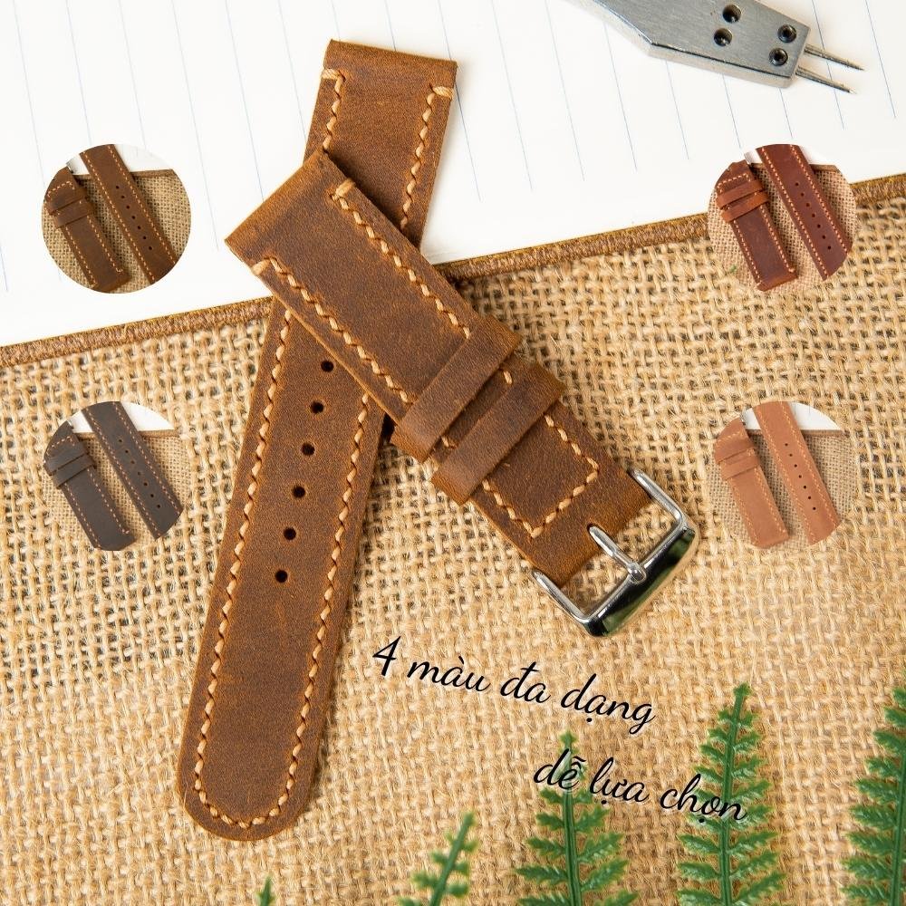 Đồng Hồ > Phụ Kiện Đồng Hồ > Dây Đồng Hồ > Dây đồng hồ da bò sáp 2 mặt, dây da đồng hồ cao cấp handmade khâu tay thủ công Tristar, size 18mm, 20mm, 22mm