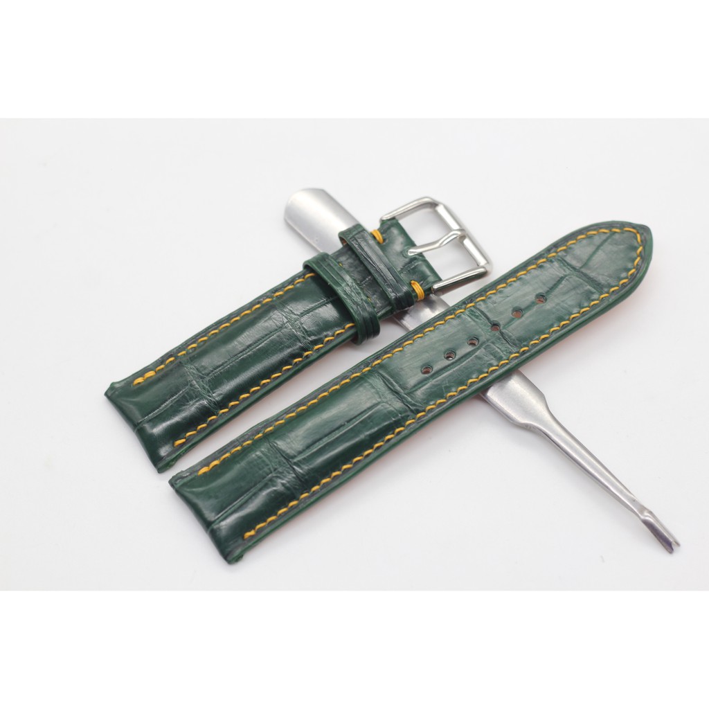 Giới thiệu Dây Đồng Hồ Da,Dây Da Cá Sấu May Tay Kèm Khóa Kim,Nâu+Xanh Lá,BH 6 Tháng, Tặng Tool Tháo Và Chốt