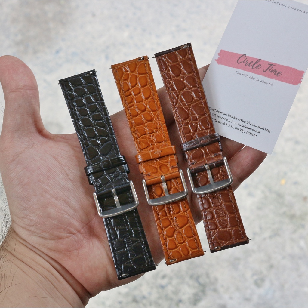 Giới thiệu Dây đồng hồ da vân cá sấu bóng chốt thông minh size 18/20/22 - CT08