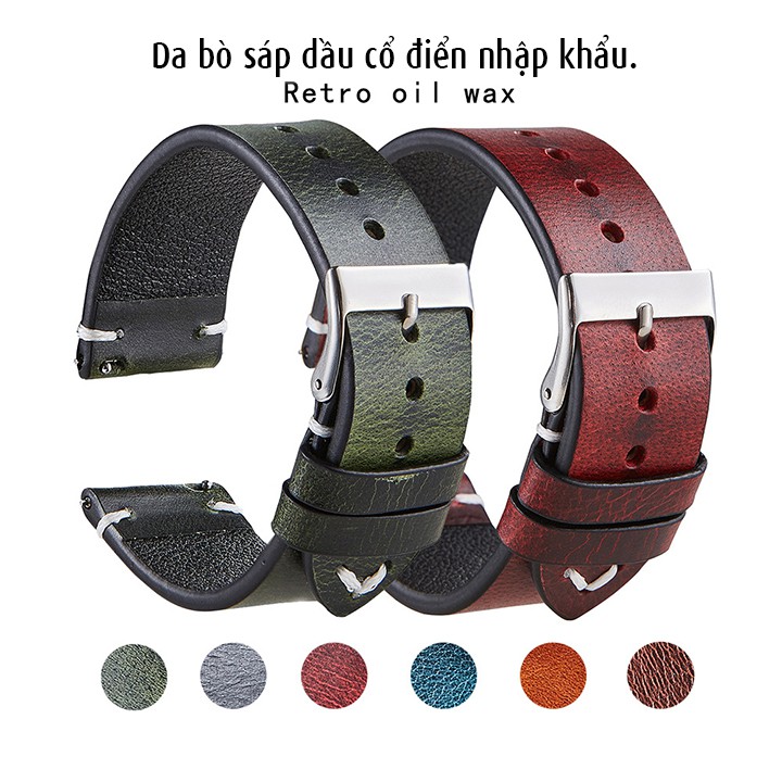 Giới thiệu Dây đồng hồ nam da bò sáp dầu phong cách cổ điển dùng chốt thông minh tháo lắp dễ dàng - D2105