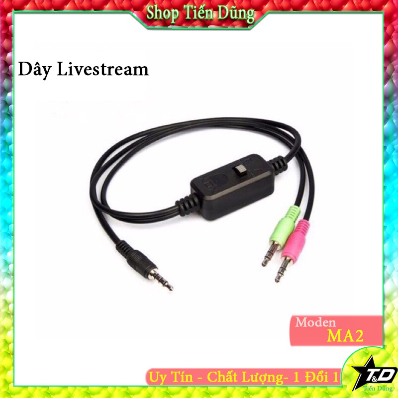 Dây MA2 dùng cho livestream cho các dòng sound card với chất lượng âm thanh tuyệt với nhất hiện tai chưa có dây nào hơn. 1. MIÊU TẢ SẢN PHẨM - Là loại dây mới nhất hiện nay so với các dây live stream XOX MA1 với 3 màu Xanh , Hồng , Đen và zắc cái màu để phục vụ cho việc ghi âm đạt chuẩn. - Dây MA2 với các đầu cắm phù các điện thoại hiên nay - Khả năng tương thích tốt các Iphone, samsung