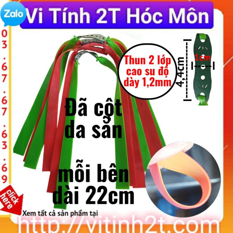 Kích thước: - chiều dài mỗi bên : 22cm - Chiều rộng đuôi dây: 2cm - Độ dày: 1.2mm - Chủng loại: Dây 2 lớp Sản phẩm được sản xuất theo dây chuyền , dập khuôn chuẩn xác , kích thước cáng, chiều dài dây chun phù hợp với sải tay, lực căng dây phù hợp với lòng bàn, cánh tay của người châu Á