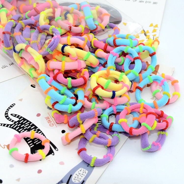 Chất liệu: Nylon + Polyester Đường kính: Khoảng 2.5-3cm Gói hàng bao gồm: 100 sợi Sản phẩm bao gồm dây thun buộc tóc 100%