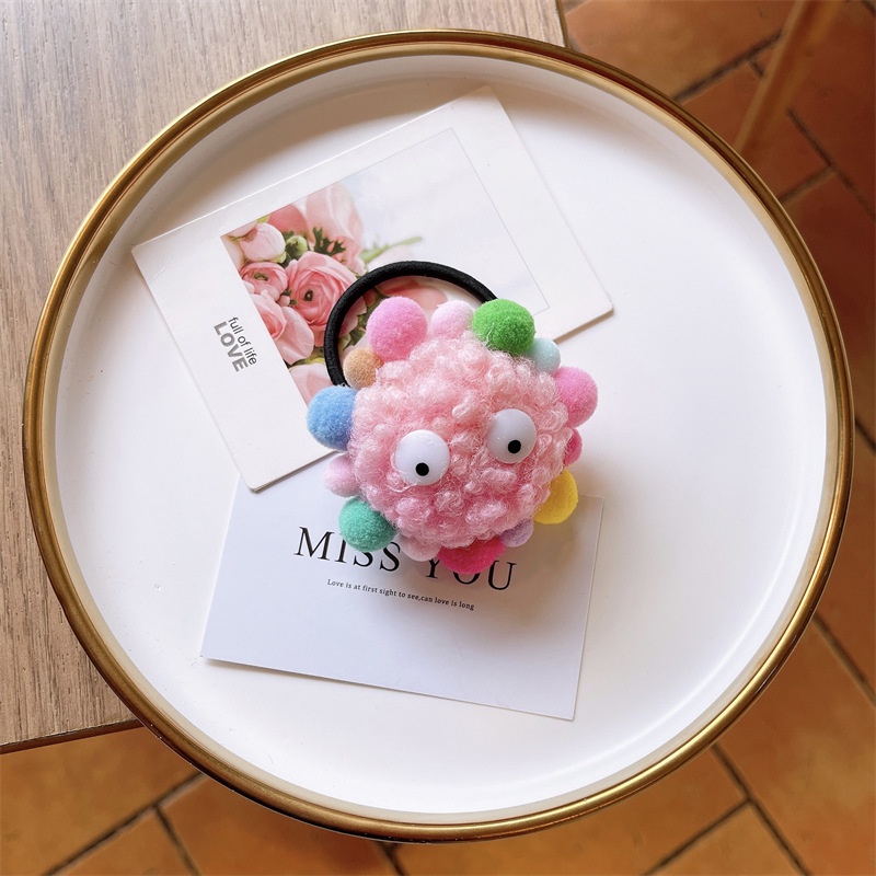 Giới thiệu Dây thun cột tóc gắn hoa hướng dương và bóng lông đáng yêu cho bé gái